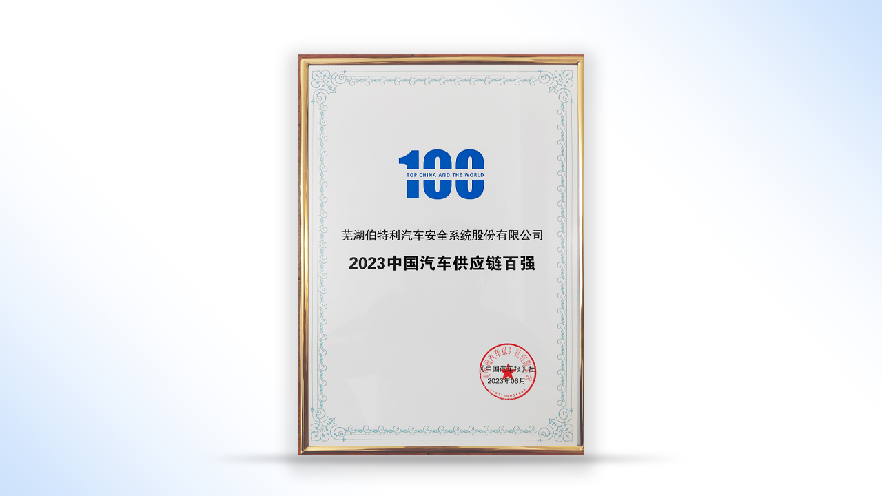 2023年6月28日,《2023全球汽車供應鏈核心企業競爭力白皮書》及“2023中國汽車零部件企業百強榜”由中國汽車報權威發布。伯特利再一次成功入選百強榜單,位列第65名,較去年排位強勢上升27位。